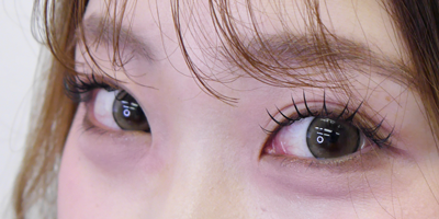 まつ毛は、黒のエクステを使用し、9mm・10mm・11mmを混ぜてつけることで通常よりも細めの束感を作りやすくなっています。