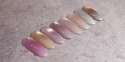そこにマグネットのきらめきを仕込み、上から白いグラデーションを重ねることでキラキラ感はありながらも派手すぎず、自然に爪へ馴染む仕上がりになります。